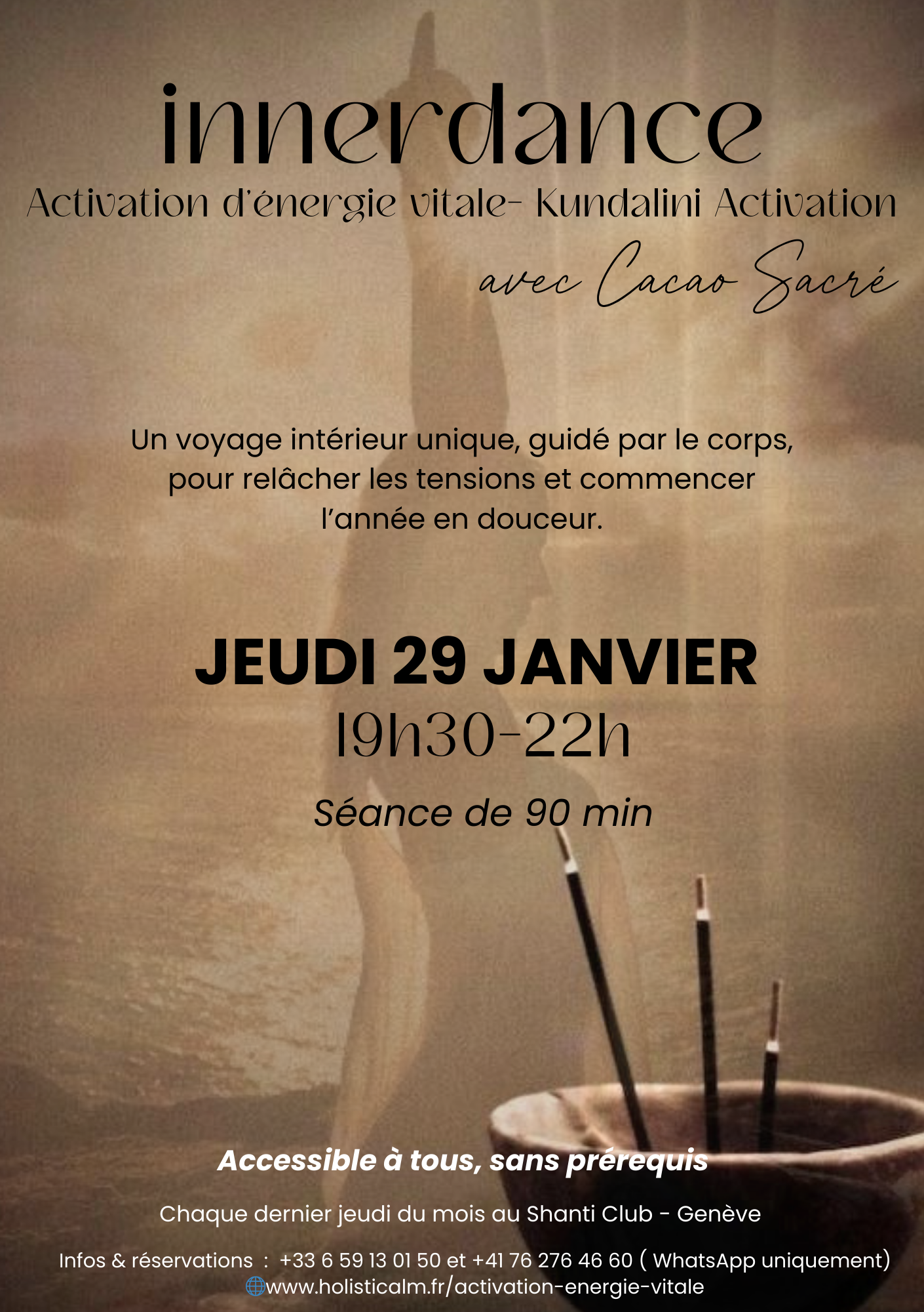 Janvier 29|Innerdance: Activation d’énergie vitale et cacao| Emilie|19h30 – 22h00